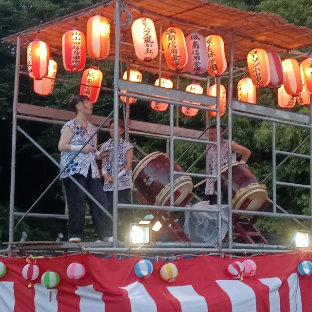 町田天神太鼓の皆さんの太鼓演奏、右手が本部