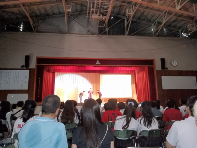 さて、今日の小川高校ですが、クラスの出店はあまり見ることができませんでしたが、その中で、体育館では1年生の公演を見せていただきました。桃太郎を現代版にアレンジしたものでしたが、せかっく育てた桃太郎がニートになったり、探し求めたタカラものは意外な価値観であったり、結末がまるで異なっていたりの内容でしたが、1年生のクラス出演と言うことで納得できました。