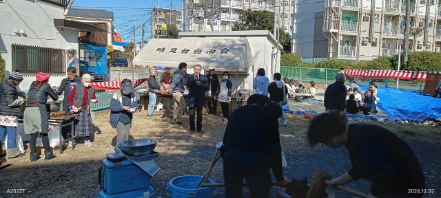 本日は、午前から晴見台自治会(加納会長)の餅つき大会に楽しく参加2024.12.07しました。