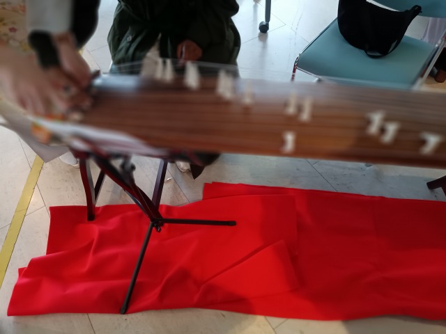 ワークショップで、筝の指導、外国人の参加が目立ちました。
