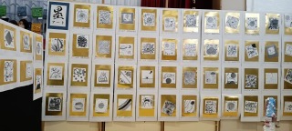 特別支援学級のクラス、児童数も多く、6組の名称で展示コーナーがありました。平面の作品のほかに、立体の作品も並び、各自、双方で2点を出していました。