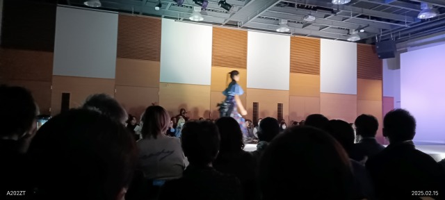 2年間廟した皆さんや、さらに2年間ファッションの勉強をつづけた専科の皆さんの作品を見せていただきました。作品を作った学生、モデルになった学生、受付や照明マイクの担当、見えないところでは着付けを担当する皆さんは皆さんが学生です。