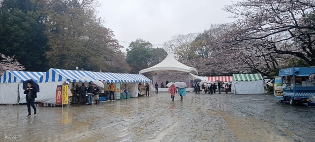 次いで、成瀬の弁天橋付近のさくらまつり、町田市総合体育館裏のさくらまつりにも立ち寄りました。成瀬の弁天橋付近の店舗テントは*商店街の一張りのみでした。団子をその場で焼いたものをそこで食べながら、しばらく談笑していました。そのには分別を行っているテントがあり、その場で処分をさせていただきました。次いで、成瀬総合体育館裏のテントでは、商店街の店が並んでおり、つくし野連合商店会では焼き万十、金森商工共和会では焼き鳥、*成瀬では玉こんにゃくを買いました。*成瀬は成瀬商友会や南成瀬共栄会の皆さんでした。