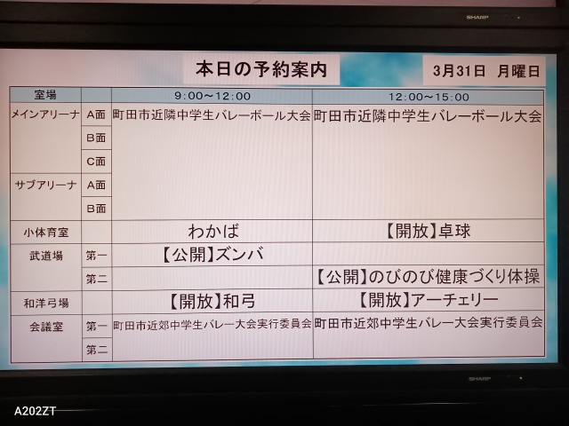 会場はすでに試合が始まっているためか、プログラムがどこにあるかわからず、大会名の表示もどこに書いてあるかわかりませんでした。後で、分かったことは、会場の予約案内板に次の表示があったのですが、その時にはおおよそ、内容を承知していました。