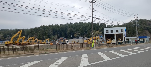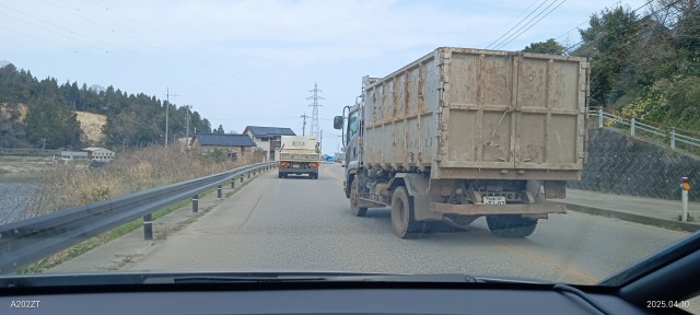 大きな土木工事が行われていたのは、国道249号線で震災被害が大きく、今になっても一般車両の通過ができない箇所がいくつもありました。そのために、山中の県道その他を迂回する方法もありますが、それもなかなか難しいルート選択になります。ダンプカーや工事用車両は事前に説明を受け、慎重に最初の通行をした上で通常運行に入っているものと思いました。