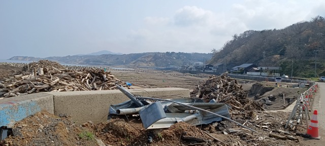 今回の奥能登訪問で驚いたことは、まだ、現地で交通止めの箇所が何カ所もあったことでした。無数にダンプカーが走っているので、土木工事や路盤改良工事はいずれ落ち着くのでしょうが、今回の能登半島地震では何カ所も海岸線や港で地盤の隆起が激しく、結果として各地で断層が目立っているところがありました。また、山間地で土砂崩れが起きており、樹木も含めて農地に放置されている光景がありました。農地の復旧は大掛かりになり、全域で農業が復興できるのは相当先のことになるでしょう。