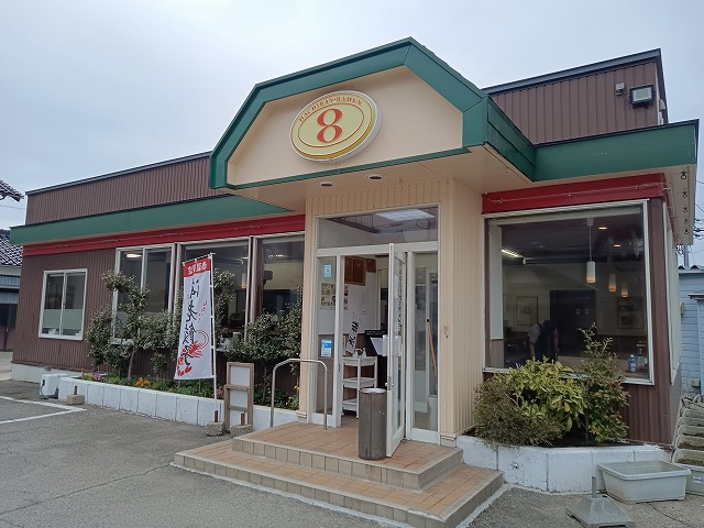 珠洲市内のラーメン 8番らーめん トイレがきれいで気持ちよく食事ができる。火・水・木の3日間営業する。被災地にあわせた営業日。店員さんの勢いが良い。