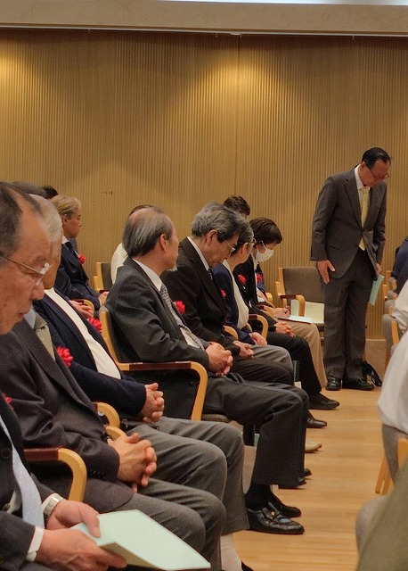 一般表彰では、納税関係団体、商工、経済団体、医療、学校保健医療分野、民生・児童・社会福祉委員、手話通訳活動、障がい児スポーツ指導、消防団員活動、自主防災組織の防災活動、防犯協会、交通安全協会、自治会活動、青少年健全育成活動、体育の振興、文化芸術の振興(個人と団体)、保護司、選挙推進委員、環境行政、公益のために寄付の方々が対象で、名前があった方々のほとんどが出席でした。また、市議会議員は表彰対象の両側に分かれて座り、受賞者の方々に拍手を送りました。そうした中で、10年以上も合わない方が、地域活動で表彰を受けていたので、終了後、声をかけさせていただきました。