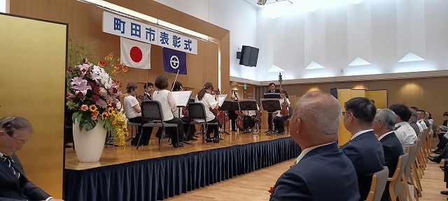 本日は文化交流センターにおいて町田市表彰式があり、自治功労と一般表彰の方々が市長より表彰され、議長が祝辞を述べました。その後、町田フィル・バロック合唱団による記念演奏が行われました2025.05.11