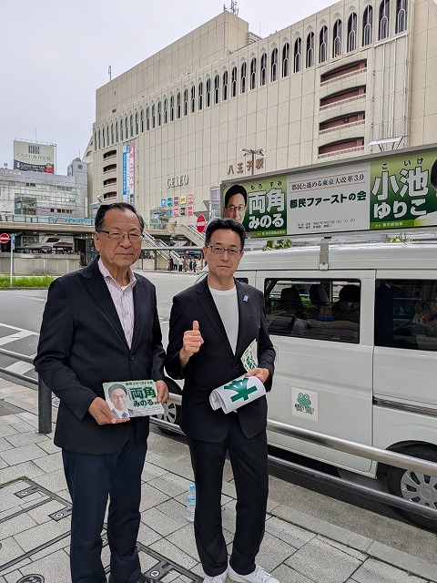本日は街頭演説の応援弁士(政策チラシ配布を兼ねる)と都議事務所に激励訪問の活動2025.06.08を行いました。