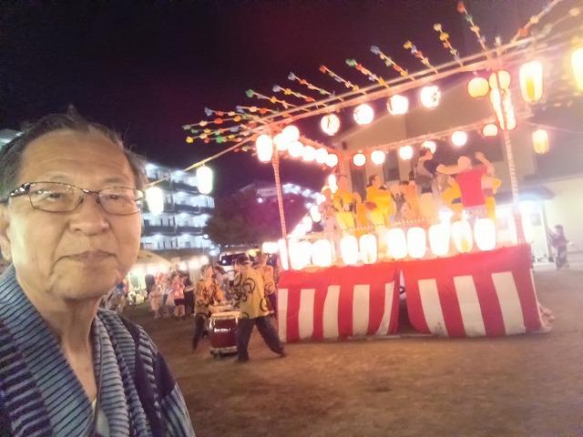ただし、諸般の事情でこれまだ縁を薄くしてきました。それでも、親しく声をかけてくる方がありました。櫓の上から招く方がありました。しかし、当方は今着いたばかり、そそくさと上がる気力はもとより無く、下の輪の中で踊りました。太鼓もよく知っている「おりづる」の皆さんでした。会長さんや副会長さんも顔見知りでした。とは言え、私はこれまで盆踊りの付き合いということで、この原町内会に盆踊り大会に参加したことは一度もなく、他の場所にいました。