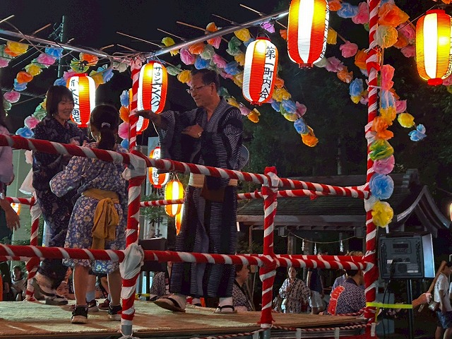 今年の盆踊り大会の特徴は、櫓の上に上がる子どもの人数制限が行われたことでした。今年は、さらに櫓に上がった子は、踊ってもらう形をとっていました。その結果、お菓子配りの時間が子どもの終了タイムでしたが、閉会まで大勢の子どもさんがいました。初めてのことでした。櫓以外でも3盆踊り曲でも、櫓の周りで踊る子が大勢いました。盆踊りというと、年配者の踊りの印象ですが、ここでは親子連れが踊る、子どもが踊るのを親は見守る、カメラに収めるに変わりました。盆踊り会場の子どもの滞在状況が変わったというのが、高ヶ坂第一町内会の盆踊り大会の特徴をなしていました。