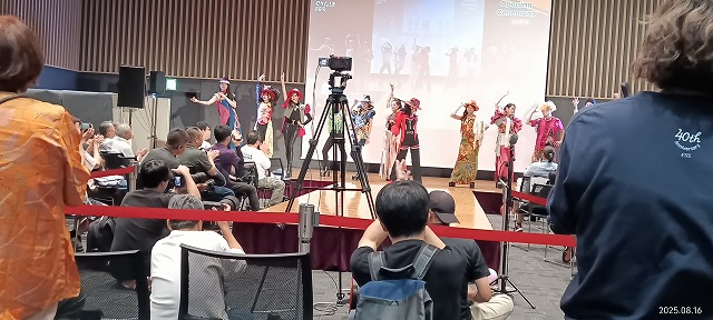 なお、出番がトップの午前の10時と正午過ぎの2回でした。他の出演者はアニメソングや声優の出演者が目立ちました。主催団体に所属し、プロを目指した人たち、あるいは世界各地の結婚式の衣装をまとったモデルなどでしたが、アニソンの世界の広がりを感じました。