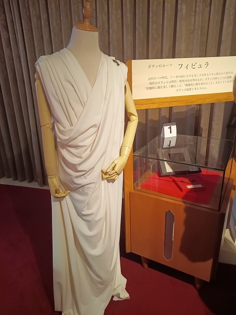 本日はBUTTON MUSEUMボタンの博物館を初めて訪れました。場所は日本橋浜町というところにあり、江戸時代は武家屋敷であったようです。近くには馬喰横山町の繊維問屋街があり、多数の卸売の会社が軒を連ねた地域に縁する場所です。そこに、 ボタンのトップメーカーであるアイリス株式会社のボタン博物館がありました。ボタンの歴史は古く、BC40世紀のエジプトや古代のローマの衣装に遡るとのことでした。当時の衣装、トーガを肩で留めるフィビュラアをボタンの起源としているようでした。