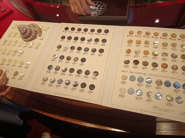 それから王侯貴族の服に、オリジナルのボタンが使われ、フランス革命で一般人がボタンを使う時代が訪れ、大量生産品のボタンに変わっていったとのことでした。それが現在ではその材料にプラスチックやABS樹脂が持ちいられるように変わり、大半の洋服に使われる部材になりました。