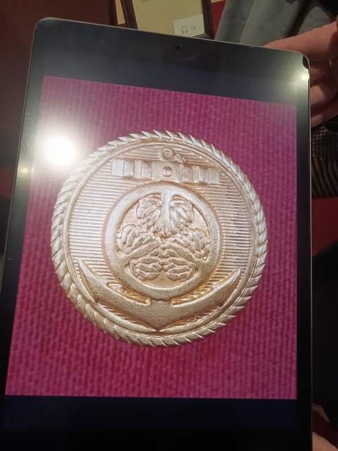 この日の見学会を主催したのは、NPO法人ユニバーサルファッション協会(吉田つとむは理事の一人)で、私もインターン生2名を同行して参加しました。展示品でルイ王朝時代の飾りボタンをあしらったドレスやココシャネルが作った(現代にも通用しそうな)ツーピースが飾ってありました。他方では、明治時代早々の軍服(海軍)には多数のボタンが使われていました。驚いたのは、タブレット写真で見せていただいたボタンには、徳川の葵の御紋をあしらったものがありました。鳥羽伏見の戦いの時代に将軍家が着ていた軍服はこのボタンが使われていたのでしょう。