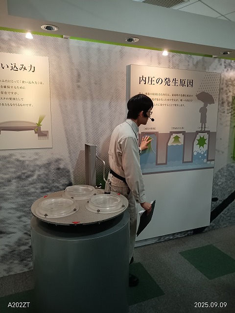 また、室内では、水利趣味レーションモデル(2分の1サイズ)を操作していただき、大きな水圧でマンホールが飛び出すのを見学しました。