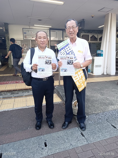 #思いがけず,#本村賢太郎相模原市長,#田園都市線すずかけ台駅,#国会議員の秘書時代,#吉田つとむ市議会報告,#チラシ配布,#活動の記念写真,#時間に余裕がない,#電車移動に切り替え,#地方に出張する,