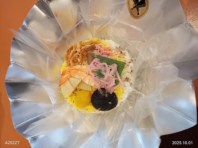 この日のお昼ご飯 茶金寿司風のもので、ロビーでおいしく、あわただしく食べました。