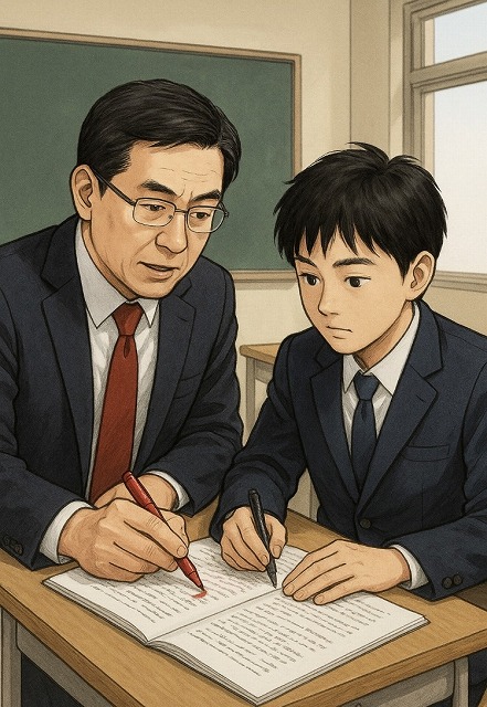 さて、それをイラスト、画像、映像に展開するとどうなるか、その友人と話している間に、ChatGPTを使って、吉田つとむのインターンシップのイメージを作成していただきました。その画像から見ると、年齢の相違、自分の雰囲気の相違、あるいは相手が大学生でなく、高校生らしい感じがするなどの相違がありますが、それをChatGPTを使って修正していく手法、あるいは逆にイメージであるから現実と相違があっても許容範囲、あるいは新しい自分を作れるかもしれません。