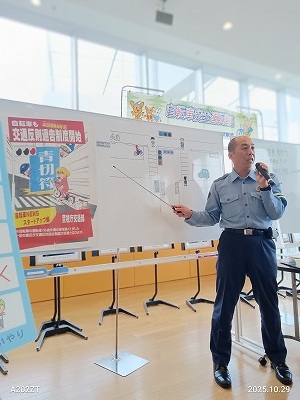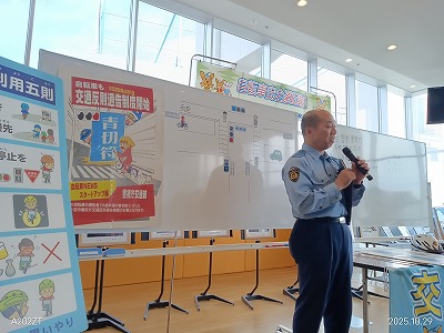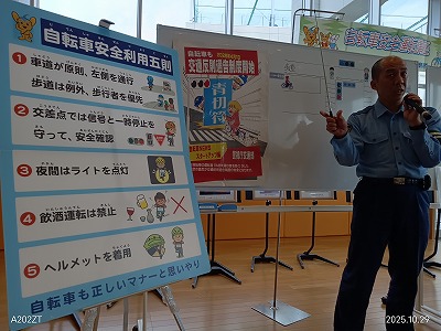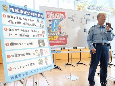 また、自転車のヘルメット着用に関する説明があり、これはまだ義務化をされていないが、大きな事故になっている例、あるいは親子で子どもにはヘルメットをかぶせても自分では被っていない例が多いことが指摘されました。さらに、都市部がヘルメット着用率が低いという話もあり、日ごろに自分でも気になっていることは警察の方から、わかりやすく説明をいただきました。ありがとうございました。