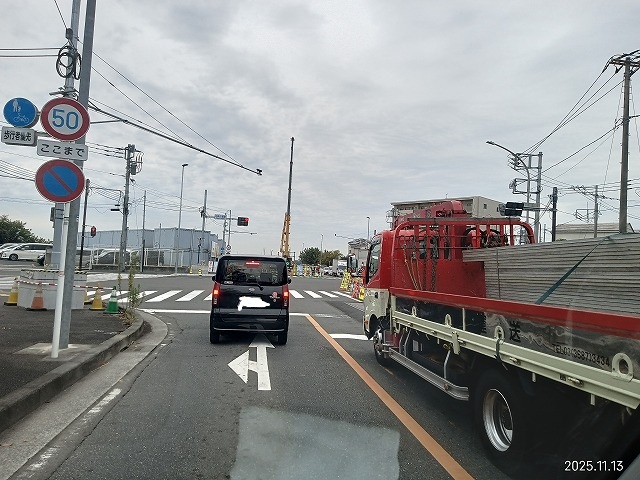 イベント的には、大阪万博に大規模で入場者を1500万人と見込んでいる施設で、今は一斉に路盤整備の土木工事中でした。施設は鋼板で囲われており、走行しながら中をうかがうのは、途中途中にある工事車両の出入り口のみでしょう。周辺に高い建物で、オープン施設はなかなか見当たらず、車は途中で止まることは少なく、相当のスピードで流れています。