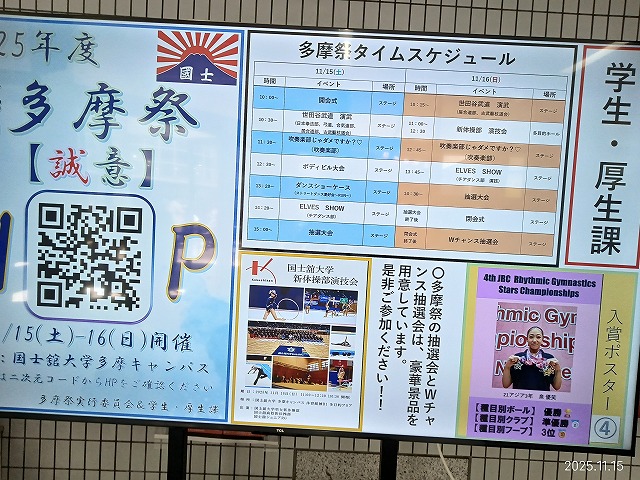 昨日から始まった、国士館大学大学祭(多摩祭)の大学祭点数評価は90点としました2025.11.16記 国士舘大学は3つのキャンパスをもっているとのとこで、この多摩キャンパスでは各種の競技の選手を育てることに重点が置かれているようでした。*他のキャンパスには行ったことが無いです。ただし、多摩祭は昨年に続き、2回目の見学となりました。