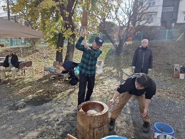 #今シーズン初めて,#餅つき大会,#晴見台自治会,#政治家が引き寄せられる,#穏やかな天候の中で,#衆議院議員秘書,#市議と都議,#市長予定候補者も登場,#吉田つとむ,#町田市議会議員,