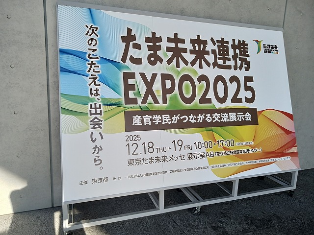 昨日は、たま未来連携EXPO2025(産学連携の展示とセミナーイベントであった)が開催2025.12.19見学しました。産学連携の展示とセミナーイベントであったと記しましたが、産学官民と言う表示もどこかにあったように思いました。企画は東京都が支援するものです。