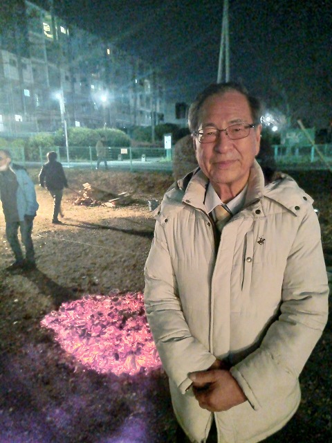 集合場所では焚火がたかれ、暖を取ることができました。また、熾火状態のところに銀紙に包んだ芋が入れられ、夜回りが済んだ頃には美味しく焼きあがっているようで、子どもさんが熱そうにほーばっていました。