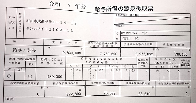 以下の年末調整の表のように、吉田つとむの年間負担額92万2800円です。吉田つとむは、年齢的にいわゆる後期高齢者ですが、現役の収入額が変わらず、保険も国保並、診療も3割負担で、正しい負担額です。