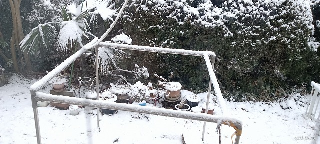 前日から心配された積雪がやはりあった。夜中の2時頃か、降雪が見られた。朝起きると、積雪は5センチほどがありました。広い道は解けていたので何とかなるかと思ったが、途中から降雪が見られた。