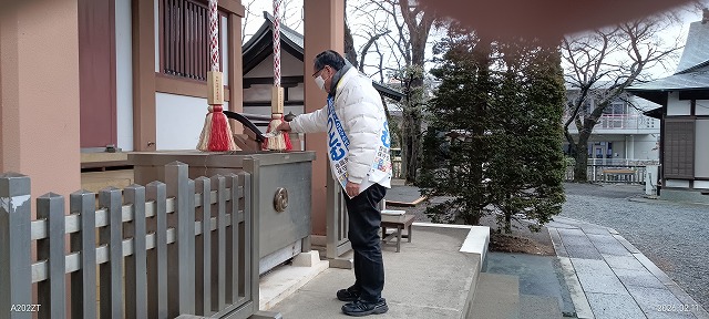 何はともあれ、吉田つとむの選挙では、神様に祈願することを時間の配分で優先しています。