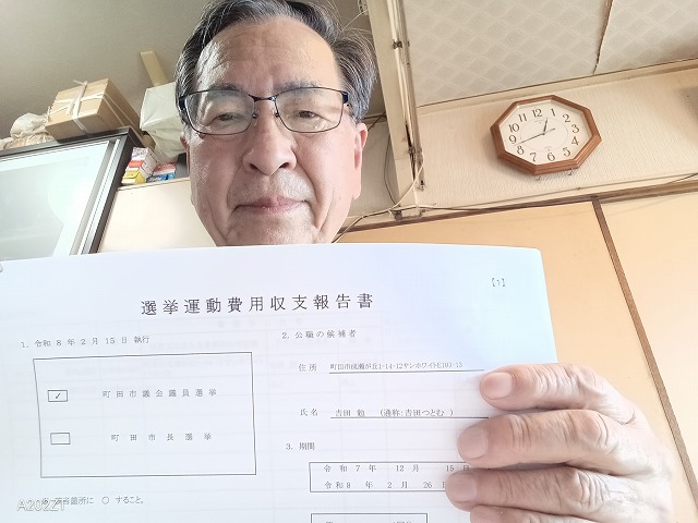 #町田市議選,#収支報告書,#作成提出を終えました,#銀行振り込み,#必要な書類を作成中です,#領収書,#選挙カー,#選挙の戦力が減少,#選挙の告示日,#町田市議会議員,#吉田つとむ,