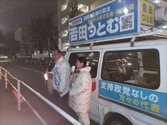 上記のように、完全無所属・支持政党なしの吉田つとむは、一切の政党を排し、有名人や団体組織を頼らず、反権威主義を基本にした活動を行い、それぞれに考えや立場が異なる「無所属会派」議員と連携した行動を取ってきました。無所属会派では、新しい新人の当選者を迎え、3人から4人に増加しました。