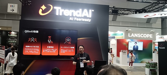 社内業務DXの部門では、ノーコードアプリが全盛でした。この分野のトップ、サイボーズのブースはミニ講演を行ていましたが、大勢の人が集まっていました。キントーンが大ヒットしたおかげでしょう。同業では、ジャストシステム(ワープロソフトの一太郎で名を成した)企業のブースもありましたが、観客の動員数ではサイボーズがはるかに勝っていました。