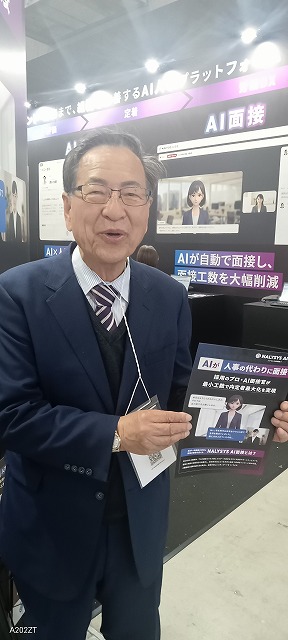 企業にとって重要な「面接」をAIが担うというものでした。他にも同様な機能を持った製品が展示されていました。これからの就活生は、1次試験の筆記試験の後、2次試験の面接をAIが担当する時代が訪れようとしているようでした。就活生は、AIと対応する能力を持つことが必須になり、就活支援産業はますます事業拡大の分野が出てくるものと思われました。もちろん、現実の企業においては、AIの判断だけで就活生の採用を決定する段階にはないものと思っていますが、逆に採用を排除する(不採用を決定する)機能を持たせるのではないでしょうか。