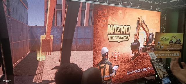 これは建設機械の操作がシュミレーションできるものです。このコクピットは、その座席自体が実働に合わせて傾きを示してくれる代物でした。試してみる価値がありましたが、待ち時間の関係で体験せずに次のブースに移動しました。