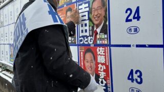 悪天候、積雪と降雪の中で公設ポスター掲示板のポスター貼りの苦労を共にする2026.02.08